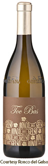 - Ronco del Gelso, Friuli Isonzo Rive Alte Friulano “Toc Bas” DOC, with aromas of white flowers, peach, apricot, almond, hazelnut and mineral hints.