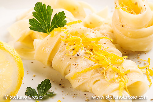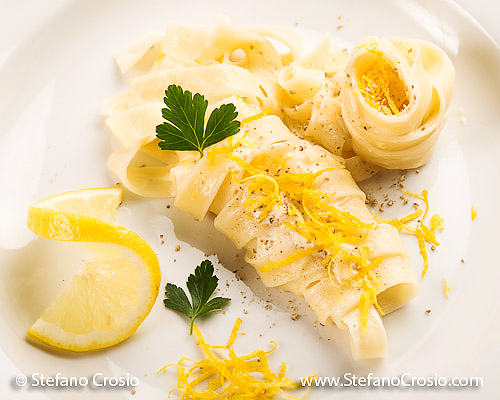 In the meantime, when the water comes to a boil, cook the tagliatelle stirring occasionally and drain them a couple of minutes before they are al dente. Put the tagliatelle into the pot where you have been warming the lemon sauce and toss to coat. Add 2 Tbsp of Parmigiano cheese and toss to coat. If the sauce is too thin, add more Parmigiano (not too much though otherwise the sauce will dry) and keep tossing, on a very low heat, until the sauce thickens.